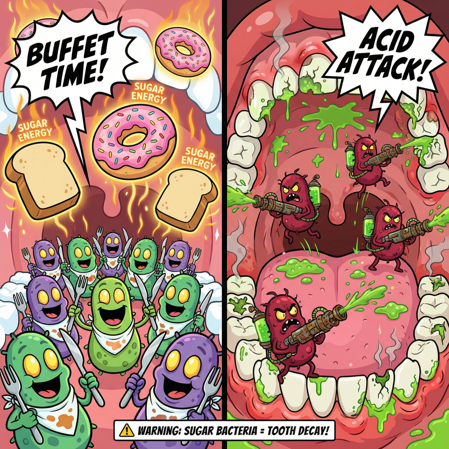 If you eat breakfast first, you're essentially providing sugar and carbohydrates for the biofilm. The bacteria then produce acidic substances, immediately starting to erode your tooth enamel.