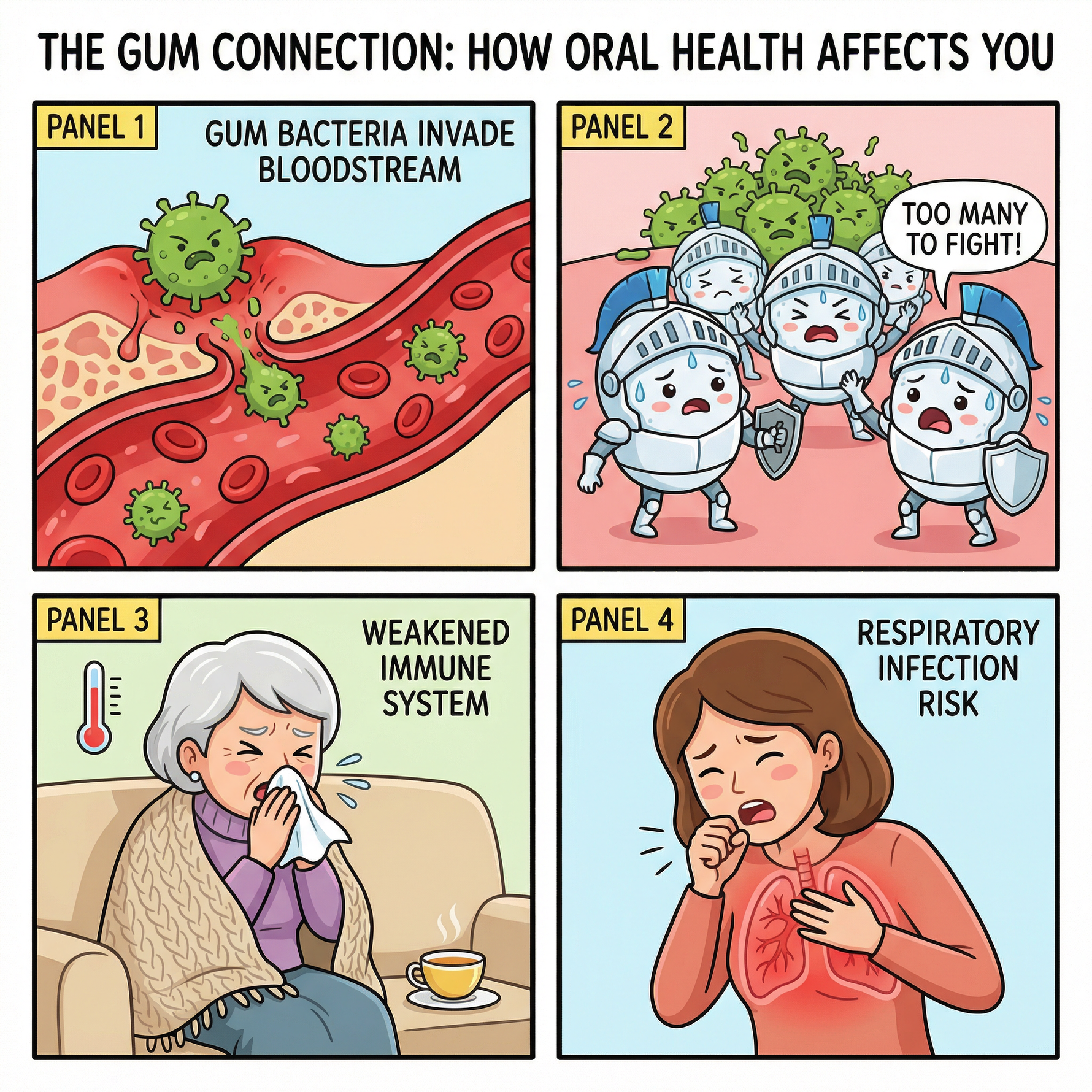 When bacteria accumulate in the mouth over a long period, the body's immune system becomes constantly "busy coping." This can easily lead to immune system fatigue.