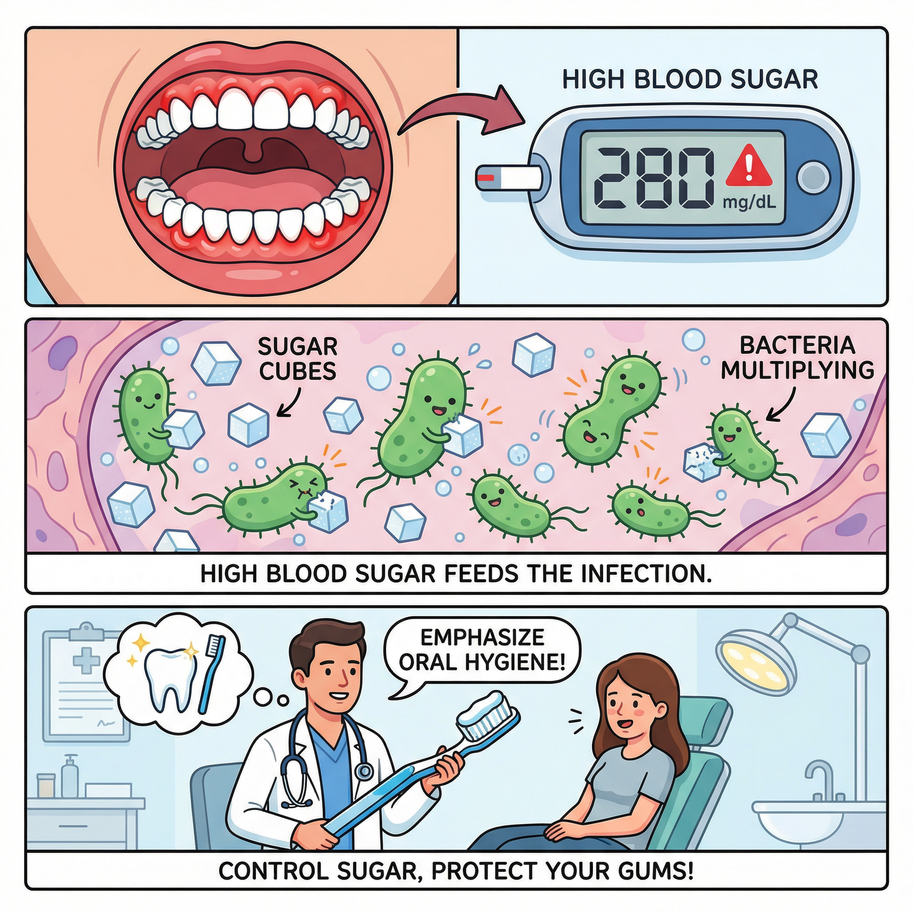 Therefore, many doctors remind diabetic patients to prioritize oral hygiene.