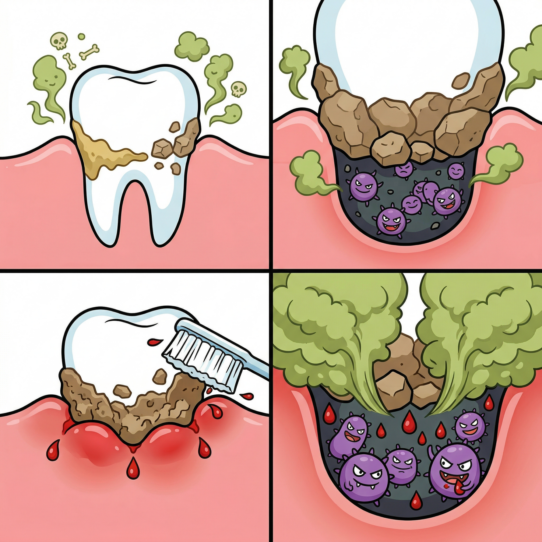 - Tartar Build-up: Over time, accumulated biofilm calcifies into tartar, multiplying the intensity of the odor.