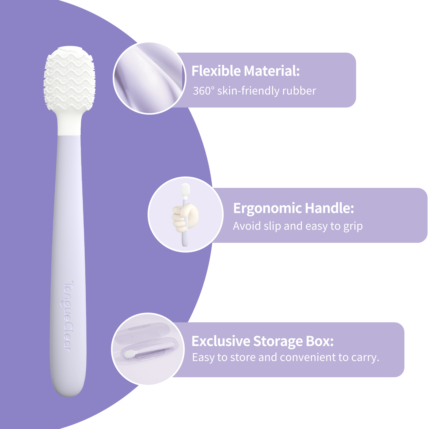 Tongueclear baby oral cleaner uses Flexconform adaptive fit cleaning, which can fit the six major parts of the mouth: tongue, gums, cheeks, jaws, lips, and teeth, fully cleaning the mouth and keeping it clean and healthy. A toothbrush can only clean the surface of the teeth.