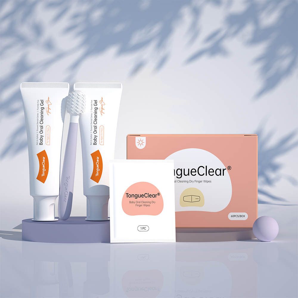 Tongueclear® kids oral brush adopts pacifier design, which is easier for kids to accept. It is made of food-grade liquid silicone material to ensure 100% safety. The oral cleaning finger wipes is made of 100% medical grade material, without glue stitching, and does not contain fluorescent agent, adhesive, or alcohol. Soft, high-quality materials are comfortable to use and will not damage teeth and gums. The combination of the two can help kids clean their mouths well during the teething period, massage their gums, relieve discomfort during the teething period, and help kids develop the habit of oral cleaning.