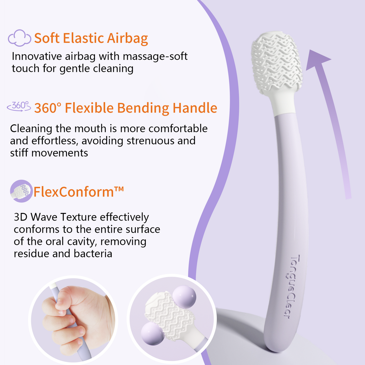 - Tongueclear airbag oral cleaner is designed based on the GIFTS oral cleaning method developed by the University of Utah School of Medicine. It is made of baby-grade silicone material and combined with Flexconform technology to achieve 360° removal of oral biofilm without dead ends.